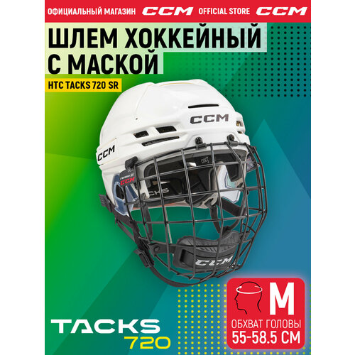 Шлем игрока хоккейный защитный с маской CCM HTC TACKS 720 SR WH, размер M (55-58.5 см), взрослый, белый