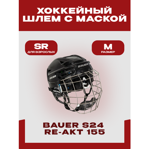 Шлем хоккейный Bauer "RE-AKT 155", размер M, черный, с решеткой