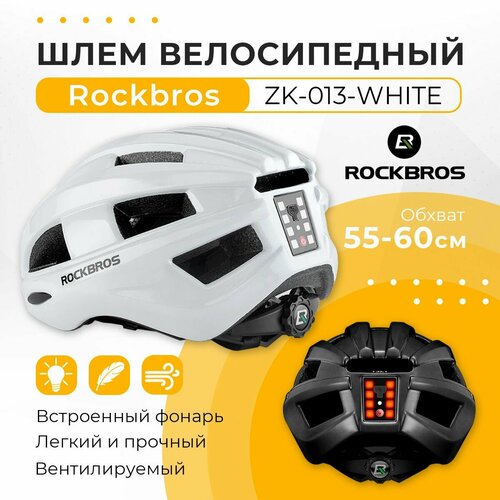 Велосипедный шлем ROCKBROS ZK-013, белый, для взрослых, размер 55-59, с фонарем