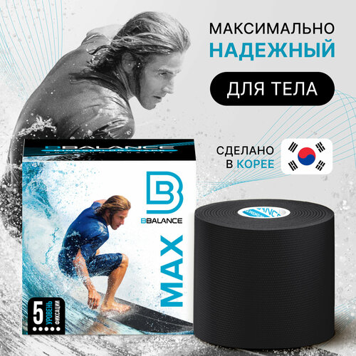BBalance MAX, кинезио тейп для тела с усиленной фиксацией. Уровень фиксации 5. Размер 5см*5м, цвет чёрный