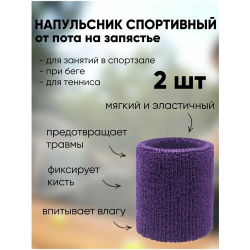 Напульсник спортивный от пота на запястье фиолетовый 2 шт