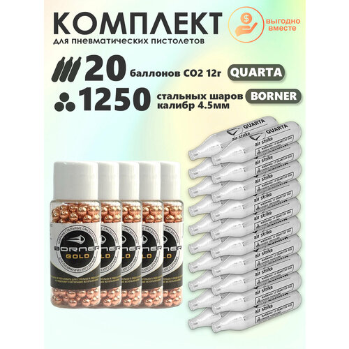 Баллончики CO2 20 шт Quarta и шарики 1250 шт Borner набор для пневматики