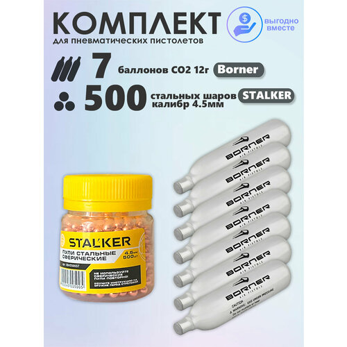 Баллончики CO2 7 шт Borner и шарики 500 шт Stalker набор для пневматики