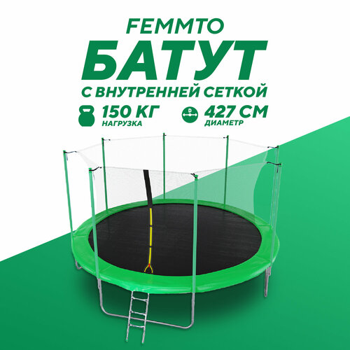 Батут с внутренней сеткой DFC Femmto 14FT зелёного цвета - отличный выбор для активного отдыха на свежем воздухе! Максимальный вес пользователя - 150 килограмм, что позволяет использовать батут как взрослым, так и детям. Цвет батута - зелёный, что делает его не только функциональным, но и стильным элементом ландшафтного дизайна.