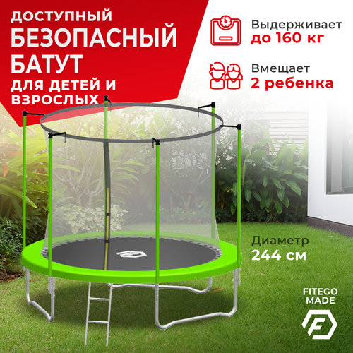 Батут каркасный FitegoJump 8 зеленый с защитной сеткой и лестницей для дачи для детей и взрослых, батут для джампинга