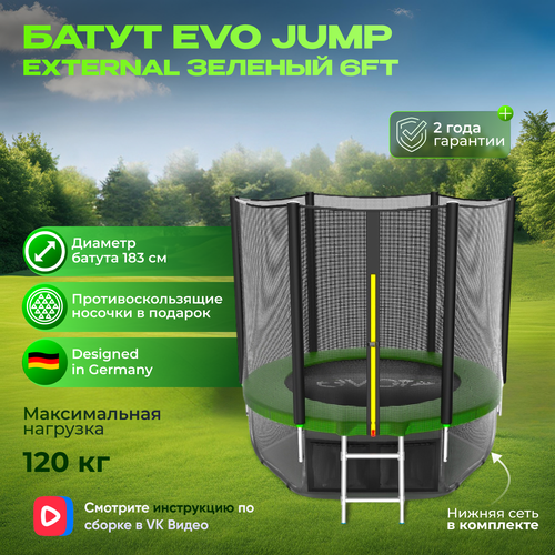 Каркасный батут EVO Jump Outside 6FT с нижней сетью 183х183х210 см , green