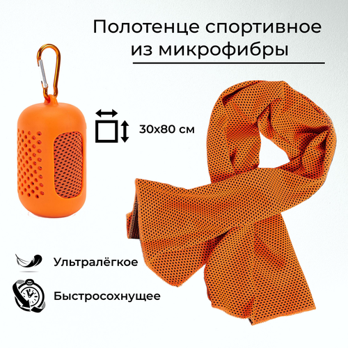 Полотенце имеет яркий оранжевый цвет и поставляется в удобном чехле с карабином для хранения и переноски. Длина полотенца составляет 80 см, а ширина - 30 см. Вес полотенца составляет всего 100 грамм, что делает его легким и удобным в использовании.