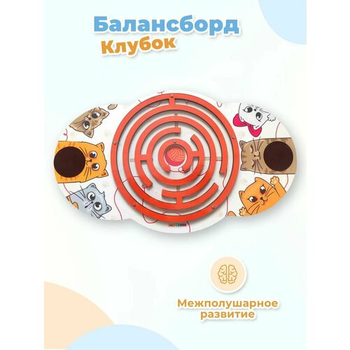 Деревянный детский балансир Smile Decor "Клубок" с лабиринтом, балансборд для детей, доска-нейротренажер для ног