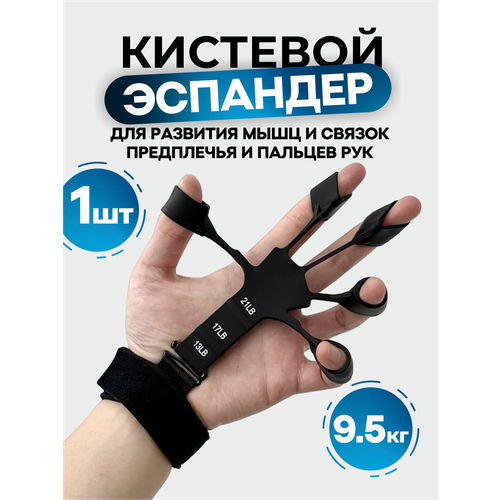 Эспандер для пальцев рук кистевой 9,5 кг, с креплением на запястье, цвет - черный