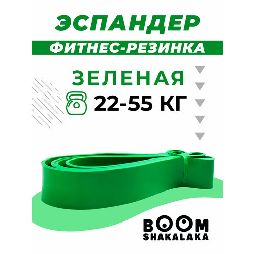 Эспандер ленточный Boomshakalaka, нагрузка 22-55 кг, 208x4.5x0.45 см, материал TPE, цвет зеленый, фитнес-резинка, петля для йоги, резинка для подтягивания