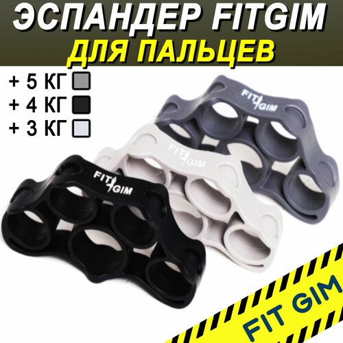 Эспандер для пальцев FIT GIM, 3 шт (3, 4, 5 кг), черно-белый