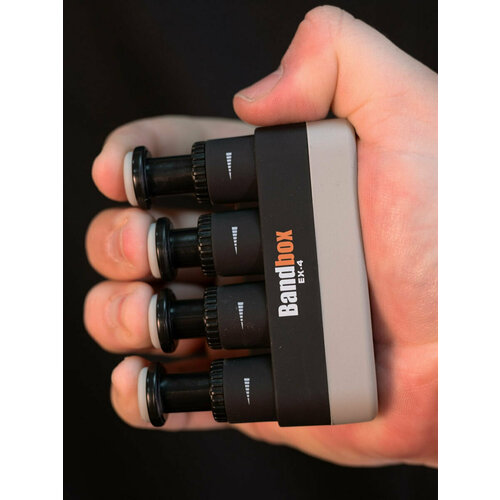 Уникальный тренажёр разработанный для тренировки пальцев рук. Его эффективность заключается в том, что каждый палец изолирован и сгибается на индивидуальной пружинистой клавише. Тренажёр позволяет добиться желаемого результата, создавая соответствующие условия тренировки для каждого пальца в отдельности, для всей руки, запястья и предплечья. Эксклюзивный дизайн располагает удобными подушечками для пальцев и позволяет регулировать натяжение отдельных пальцев-от лёгкого, до более тяжелого. С помощью тренажера Bandbox EX-4 начинающие гитаристы смогут значительно быстрее развить легкость пальцев и освоить сложные приёмы игры, а профессионалы смогут легко разогреться перед выступлением.