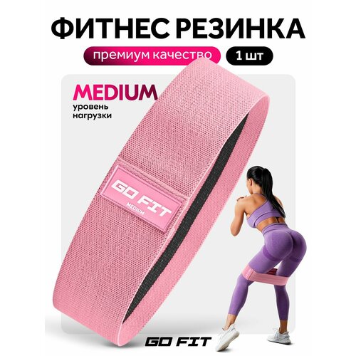 Тканевая фитнес резинка GO FIT Premium, нагрузка средняя, спортивная резинка для фитнеса, йоги и пилатеса, эспандер ленточный, эластичная лента, розовый, Medium