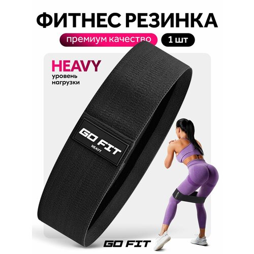 Тканевая фитнес резинка GO FIT Premium, спортивная резинка для фитнеса, йоги, пилатеса, эспандер, черный, Heavy