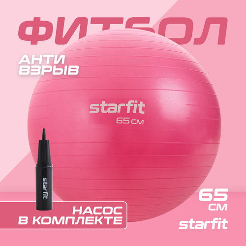 Фитбол STARFIT GB-109 65 см, 1000 гр, антивзрыв, с ручным насосом, розовый