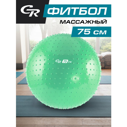 Мяч гимнастический массажный, фитбол, для фитнеса, для занятий спортом, диаметр 75 см, ПВХ, мятный, JB0210557