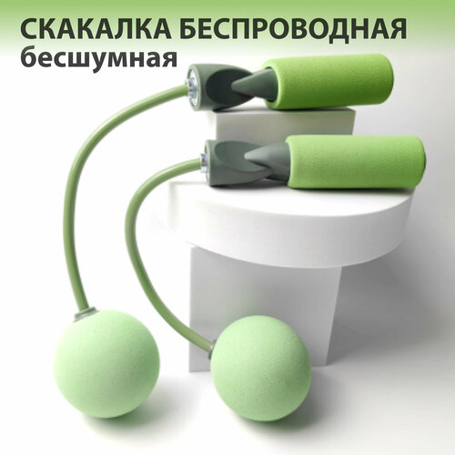 Скакалка беспроводная с шарами компактная для занятий в помещении, бесшумная спортивная скакалка для фитнеса без провода, без троса, прыгалка для взрослых и детей, зеленая