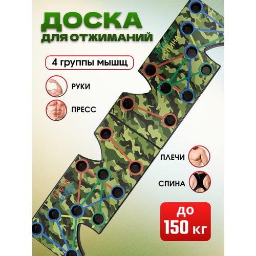 Спортивная доска с упорами для отжиманий, размеченная по специальной системе упражнений на различные группы мышц и зон торса - плечи, спину, руки, грудь. Платформа для отжиманий с упорами выдерживает интенсивные ежедневные нагрузки и создана для регулярных упражнений, выдерживает до 150 кг. Переставляя упоры для рук в разные пазы на доске, Вы получите упражнения на разные группы мышц. Каждый цвет тренажер для отжиманий соответствует своей группе мышц.