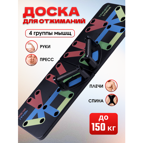 Спортивная доска с упорами для отжиманий, размеченная по специальной системе упражнений на различные группы мышц и зон торса - плечи, спину, руки, грудь.