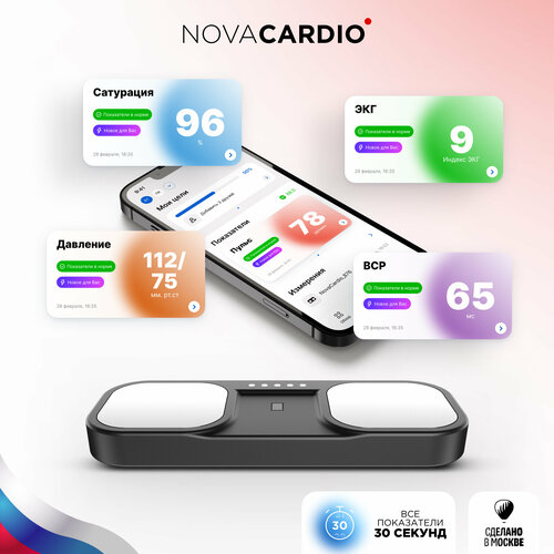 Кардиомонитор NovaCardio: кардио карта - трекер здоровья, мониторинг сердечно-сосудистых заболеваний, тонометр цифровой, пульсоксиметр и электрокардиограф ЭКГ