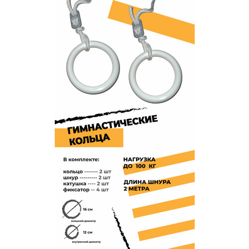Кольца гимнастические универсальные до 100 кг, d 16 см, белый