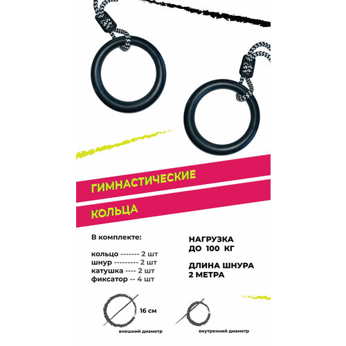 Кольца гимнастические универсальные до 100 кг, d 16 см, черный