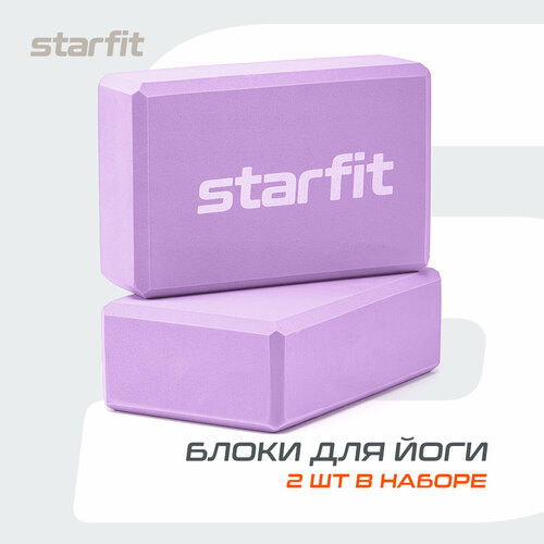 Блок для йоги STARFIT YB-200 EVA, 8 см, 115 гр, 22,5х15 см, фиолетовый пастель, 2 шт