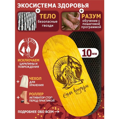 Доска Садху / Доска с гвоздями / Доска для йоги / Сила Внутри / Желтый / шаг 10 мм / Видеоуроки