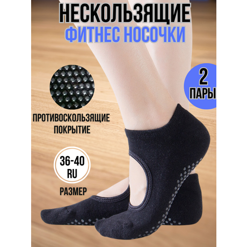 Нескользящие черные женские носки для фитнеса и йоги, размер 36-40, 2 пара