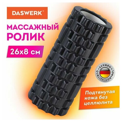 Ролик массажный для йоги и фитнеса 26х8 см, EVA, черный, с выступами, DASWERK, 680021