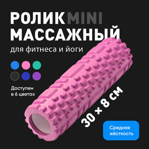 Ролик массажный Shark Fit, Валик для спины мфр, 30 см, розовый