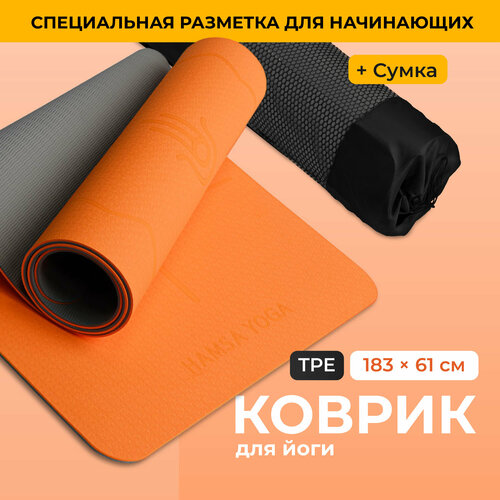 Hamsa Yoga, Спортивный тренировочный коврик для йоги и фитнеса с покрытием TPE, Гимнастический инвентарь для фитнеса, Размер 183х61х0.6 см