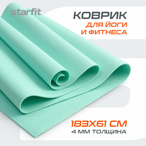 Коврик для йоги и фитнеса STARFIT FM-101 PVC, 0,4 см, 183x61 см, мятный