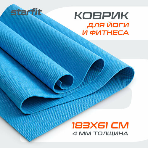 Коврик для йоги и фитнеса STARFIT FM-101 PVC, 0,4 см, 183x61 см, синий