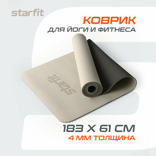 Коврик для йоги и фитнеса STARFIT FM-201 TPE, 0,4 см, 183x61 см, черный/серый