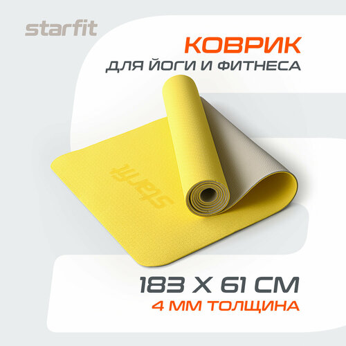 Коврик для йоги и фитнеса STARFIT FM-201 TPE, 0,4 см, 183x61 см, желтый/серый