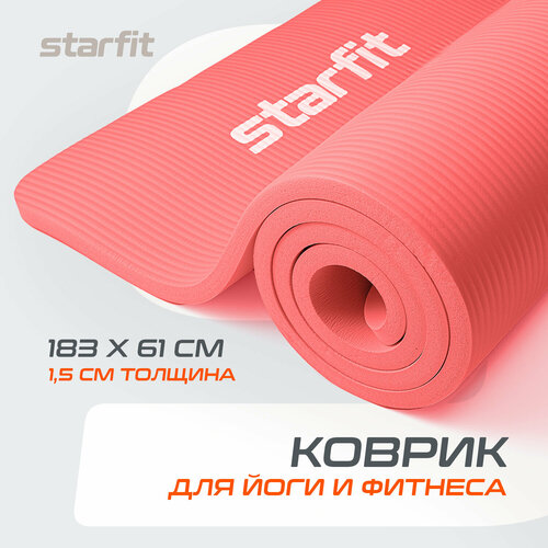 Коврик для йоги и фитнеса STARFIT FM-301 NBR 1,5 см 183x58 см коралловый
