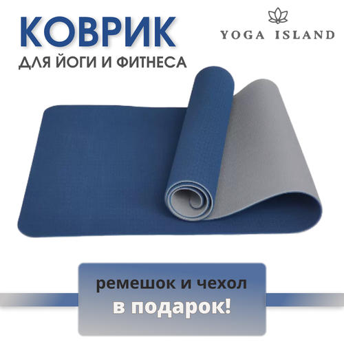 Коврик для йоги и фитнеса Yoga Island, нескользящий, ТПЕ, 0.6 см, 183×61 см, темно-синий