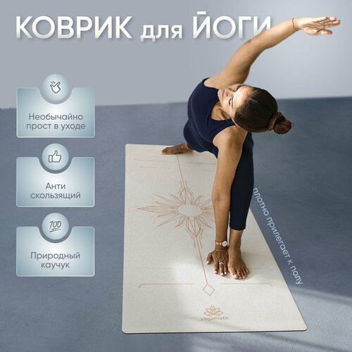 Коврик для йоги нескользящий каучуковый с чехлом Арт Йогаматик Sun White Premium Light 185x68x0.4 см белый