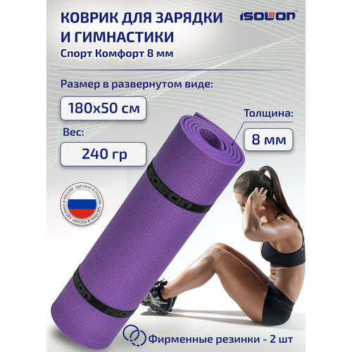 Коврик для зарядки и гимнастики Спорт Комфорт 8, 1800х500х8 мм фиолетовый