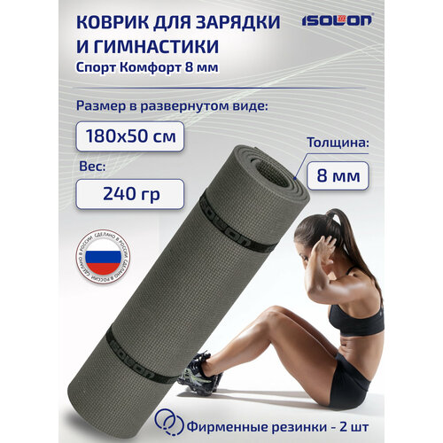 Коврик для зарядки и гимнастики Спорт Комфорт 8, 1800х500х8 мм серый