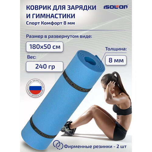 Коврик для зарядки и гимнастики Спорт Комфорт 8, 1800х500х8 мм синий
