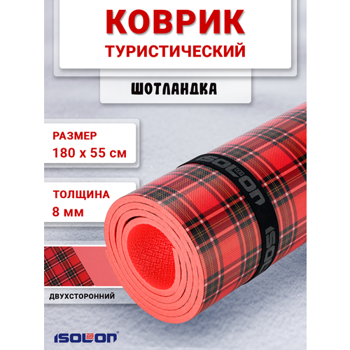 Коврик ISOLON Коврик с водонепроницаемым покрытием спортивный для фитнеса и отдыха Isolon Decor, 180х55 см красный 0.8 см