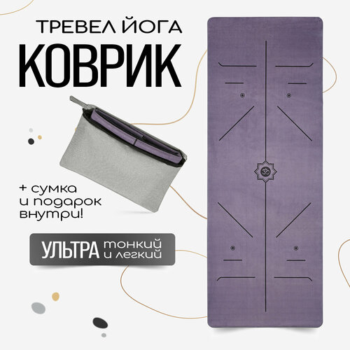 Тонкий легкий коврик для йоги Om Dark Purp 185*68*0,1 см из микрофибры и каучука