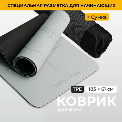 Спортивный тренировочный коврик, Hamsa Yoga, Для йоги и фитнеса с покрытием TPE, Гимнастический инвентарь для фитнеса, Размер 183х61х0.6 см