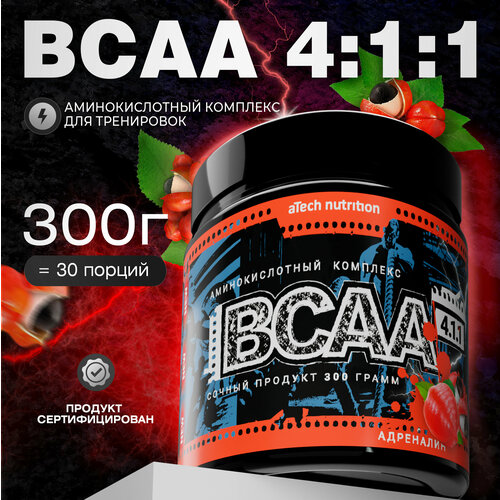 Аминокислотный комплекс aTech Nutrition BCAA 4:1:1, адреналин, 300 гр.