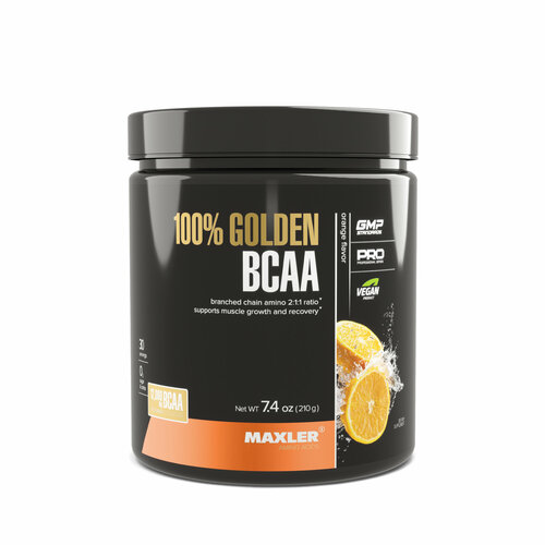 Аминокислоты Maxler 100% Golden BCAA - Апельсин, 210г - БЦАА в соотношении 2:1:1 - В форме порошка - 30 порций
