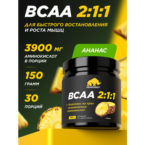 Аминокислоты PRIMEKRAFT BCAA 2:1:1 (БЦАА) Ананас, 150 г / 30 порций