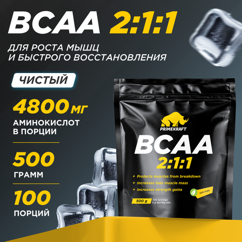 Аминокислоты PRIMEKRAFT BCAA 2:1:1 (БЦАА) Чистый, без вкуса (pure), 500 г /100 порций