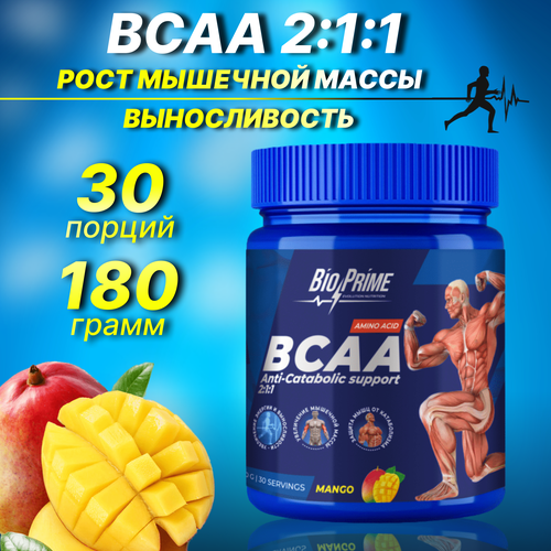 BCAA 2:1:1 Bio-Prime порошок / Для роста мышц и выносливости / Вкус манго 180 гр.